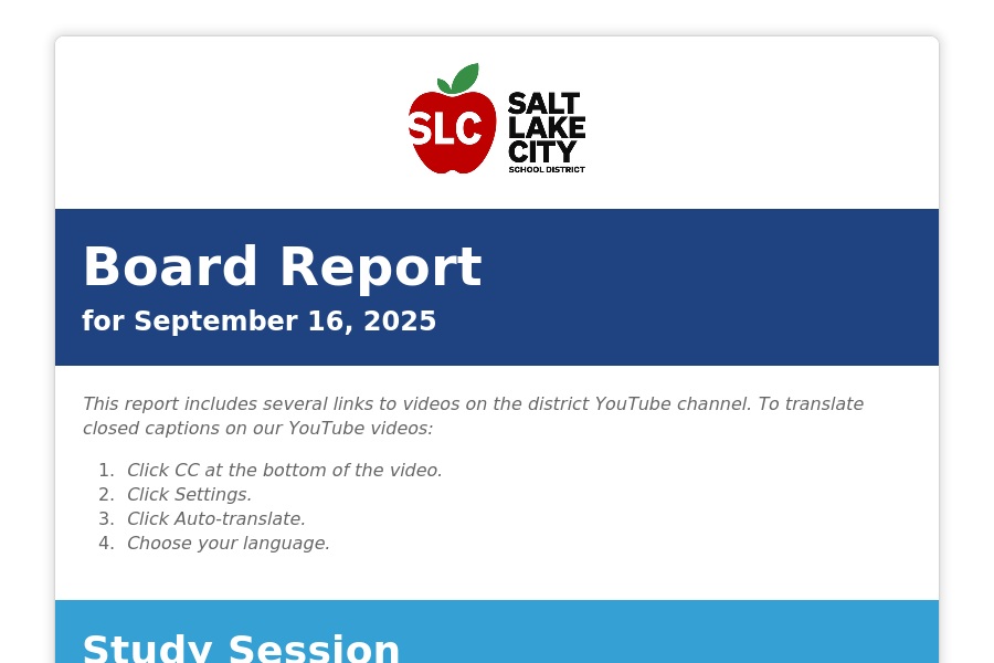 Board Report for September 16, 2025 This report includes several links to videos on the district YouTube channel. To translate closed captions on our YouTube videos: Click CC . . .